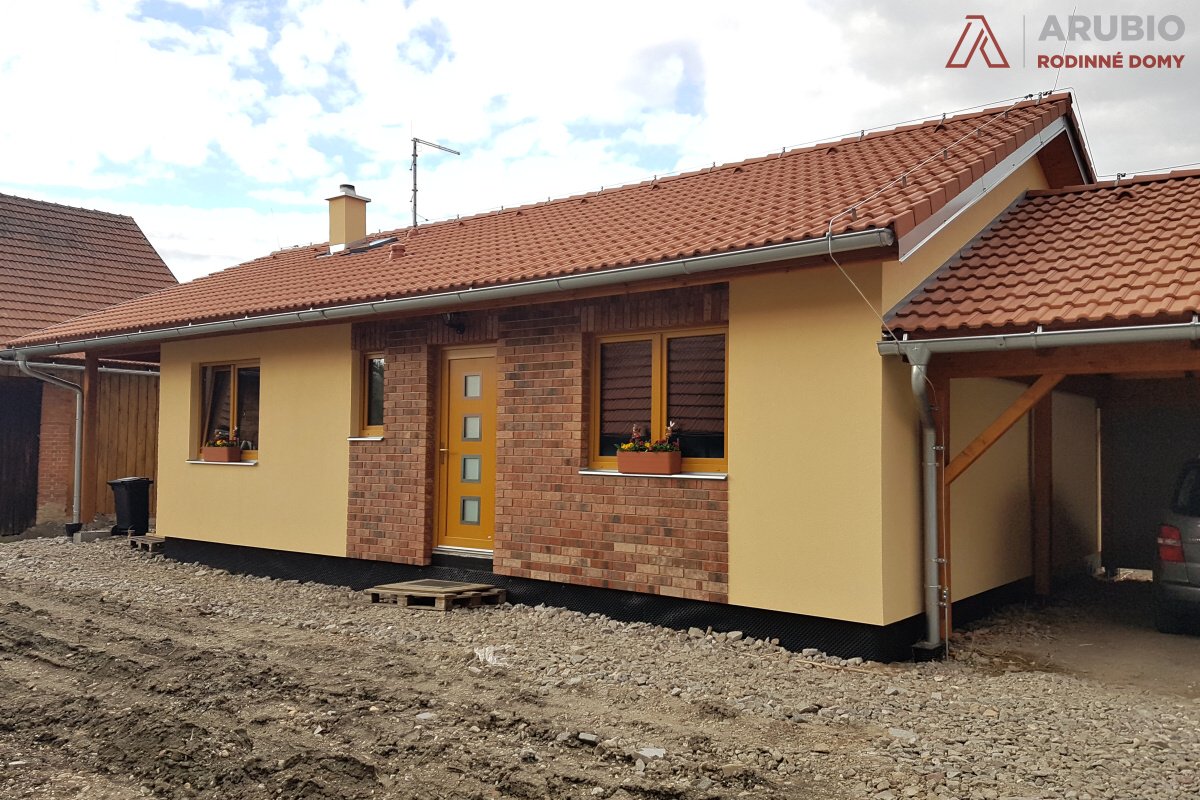 Dřevostavbu 3+kk o užitné ploše 80,5 metrů čtverečných jsme právě dokončili a navštívili v obci Lodín v okrese Hradec Králové. Malý bungalov obdelníkového půdorysu 13,3 x 7,7 metrů s integrovanou terasou, sedlovou střechou a krytým dvoustáním jsme začali realizovat na začátku května 2018 a montáž stěn proběhla o měsíc později v červnu. Nyní už je dům obýván a majitelé mohou využít příznivého jarního počasí k dokončovacím pracím na okolí stavby i k relaxaci na nové terase.