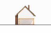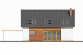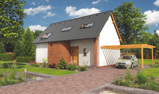K tomuto domu lze na přání přistavět pergolu, kryté stání pro auto i garáž. Sedlová střecha dřevostavby Domino má sklon 45 stupňů a hřeben se nachází ve výšce 7,4 m. Její rozměry jsou cca 11,2 x 6,4 m. Hlavní vchod doporučujeme orientovat na sever, východ, severovýchod či severozápad.