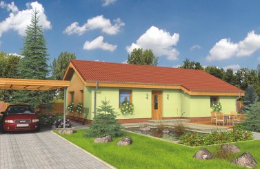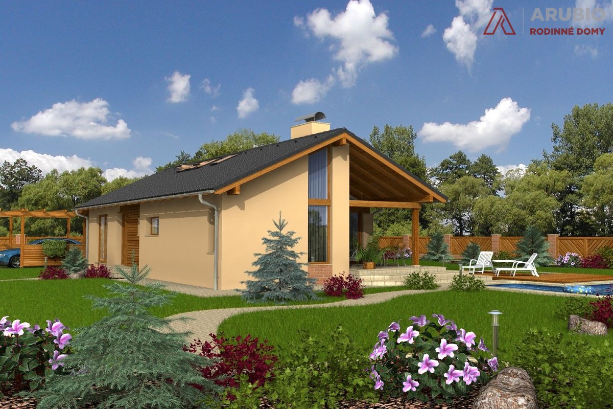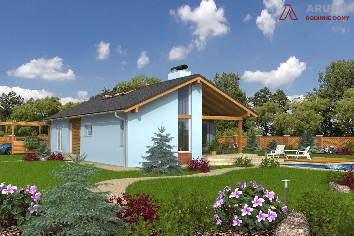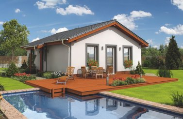 Mezi našimi dřevostavbami na klíč je bungalov Uno 1 jeden z nejoblíbenějších. Díky jeho jednoduchému obdelníkovému půdorysu ho lze umístiti i na úzké pozemky, tradičním prvkem je sedlová střecha s přesahy. Součástí projektu je také krytá terasa, díky které si venkovní posezení s rodinou a přáteli vychutnáte téměř za jakéhokoliv počasí.