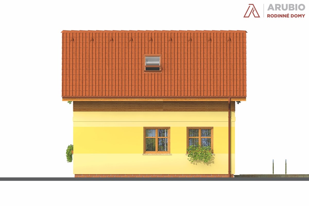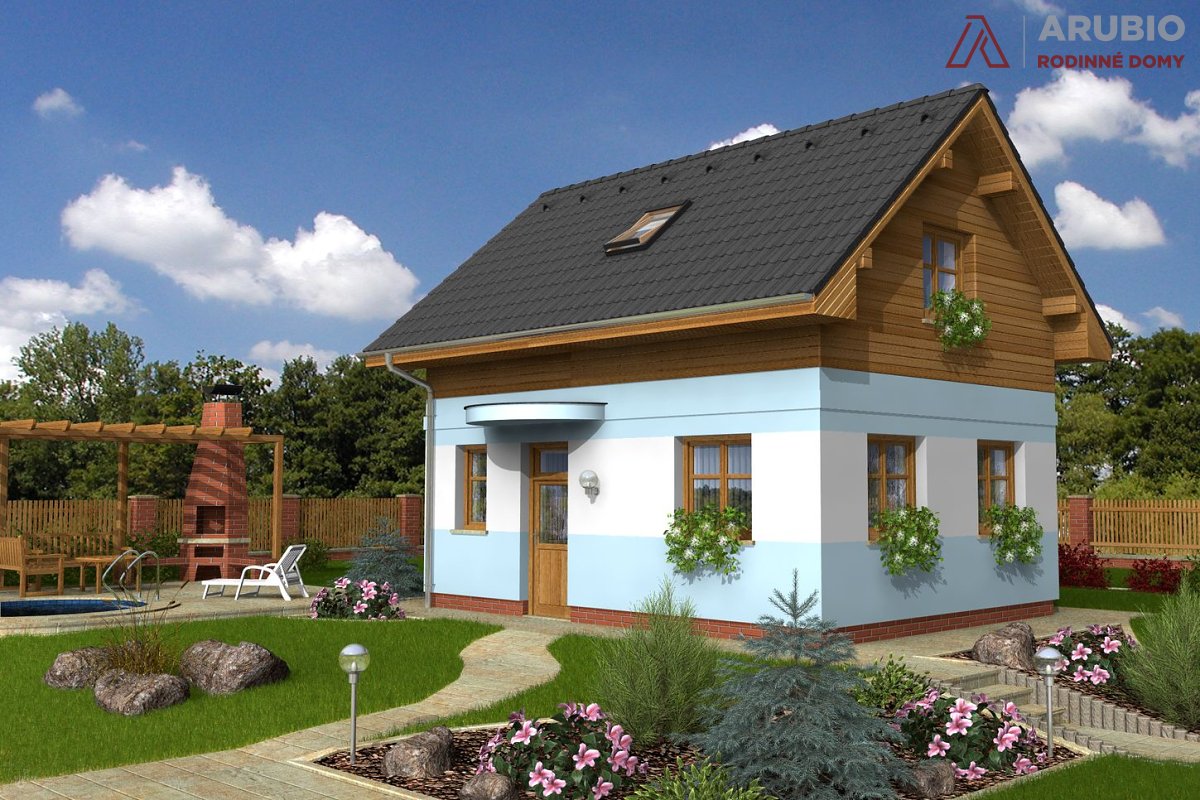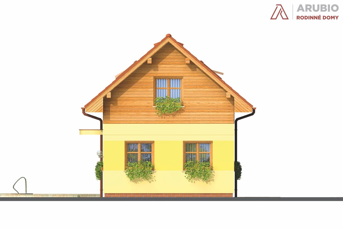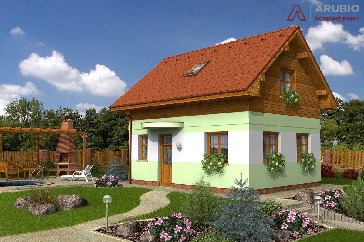 Sedlová střecha dřevostavby má hřeben ve výšce 6,87 m a sklon 40 stupňů. Rozměry domu jsou 7,2 a 5,2 m. Vstup doporučujeme orientovat na sever nebo severozápad. Krytí vstupních dveří není zahrnuto do cenové kalkulace a bude řešeno individuálně dle potřeb zákazníka.