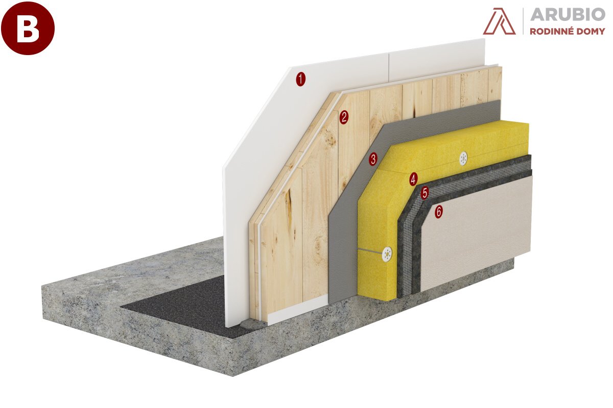 ...řez obvodovou stěnou dřevostavby (obr. A, B)