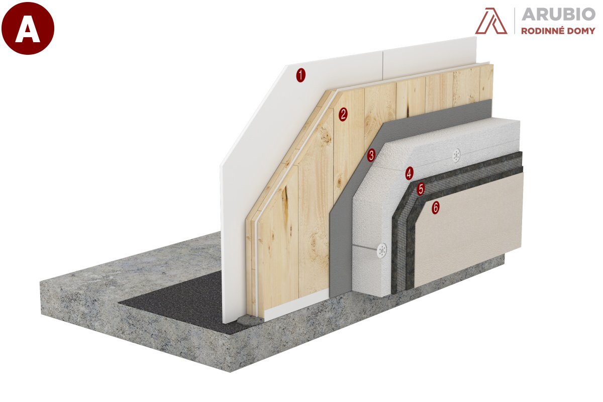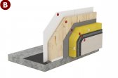 - tepelná izolace z fasádního polystyrenu (A) nebo minerálních vláken (B), minimální tl. 180 mm