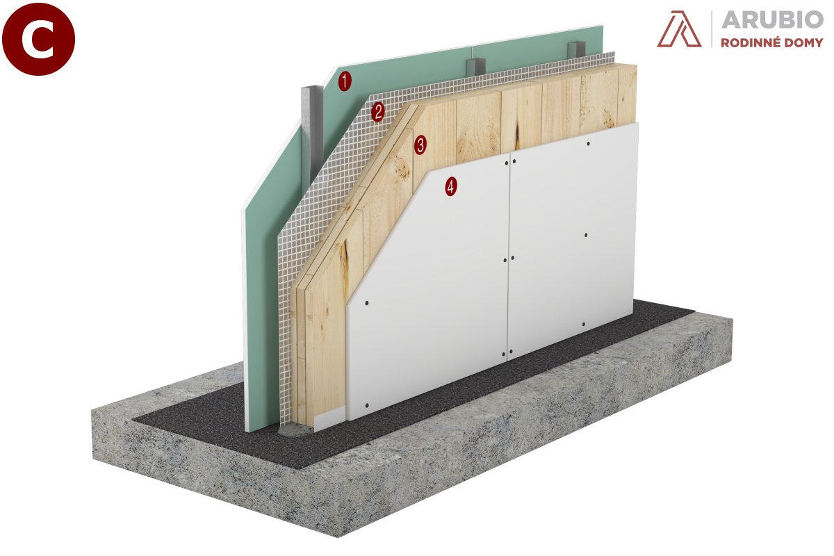 ...řez vnitřní stěnou dřevostavby (obr. C)